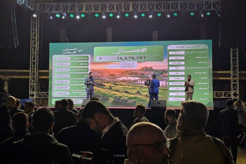 The campaign raised over $14.6 million in total donations, with wide participation from both government institutions and civil society organizations. Contributors included the Ministry of Energy ($1.6 million), the Syrian Arab Red Crescent ($2 million), the Syrian Chamber of Industry and Commerce ($1.5 million), the Aga Khan Network ($1 million), and Syrian Civil Defense—the White Helmets—($1 million) to establish a new center in Suwayda.