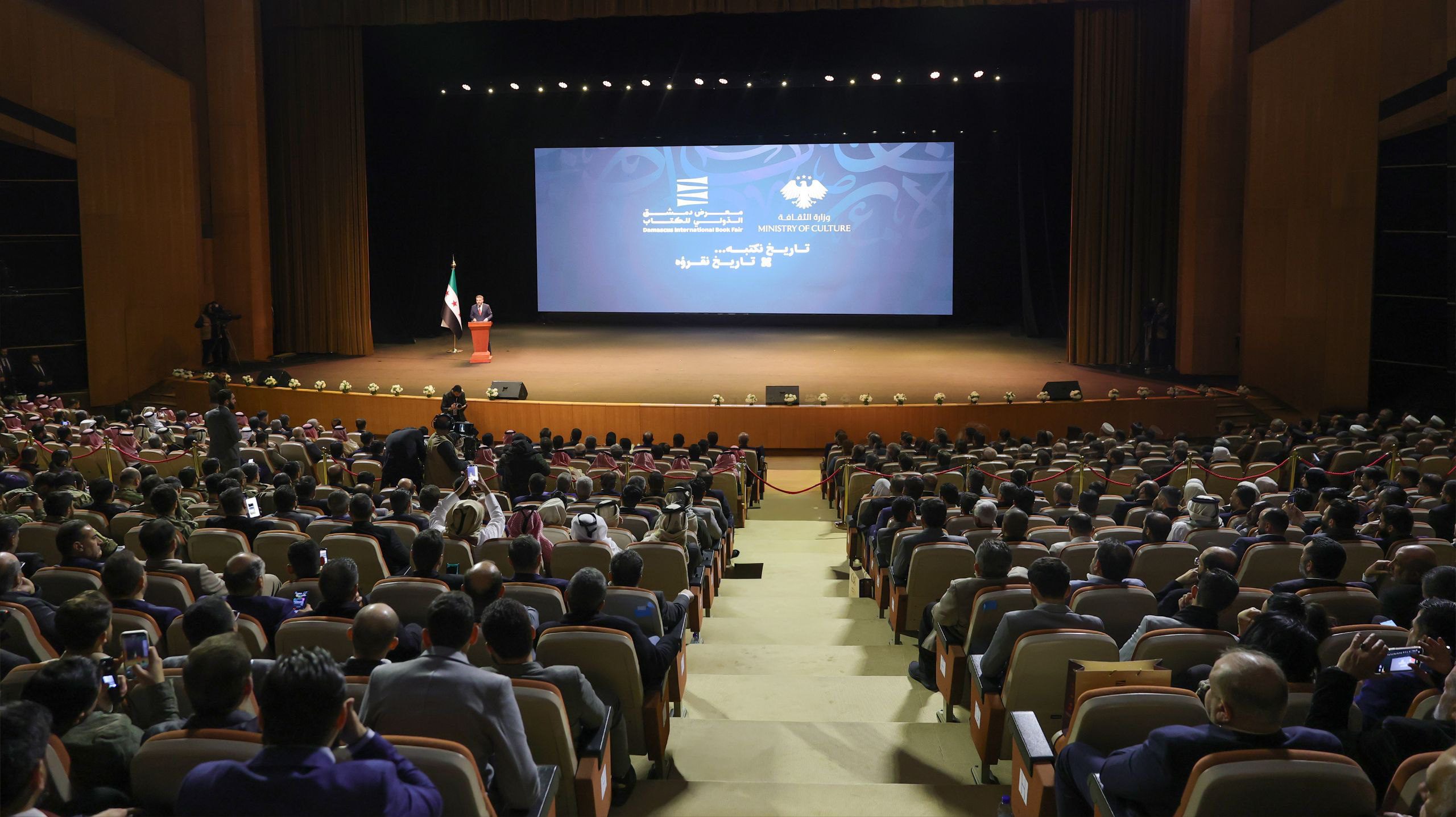 Under the patronage and in the presence of President Ahmad al-Sharaa, the Damascus International Book Fair was inaugurated on Thursday evening, Jan. 5, in an exceptional edition, the first since liberation. The opening ceremony was held at the Damascus Conferences Palace under the slogan, “History We Write… History We Read,” and was attended by senior Syrian officials and Arab and international delegations participating in the fair.