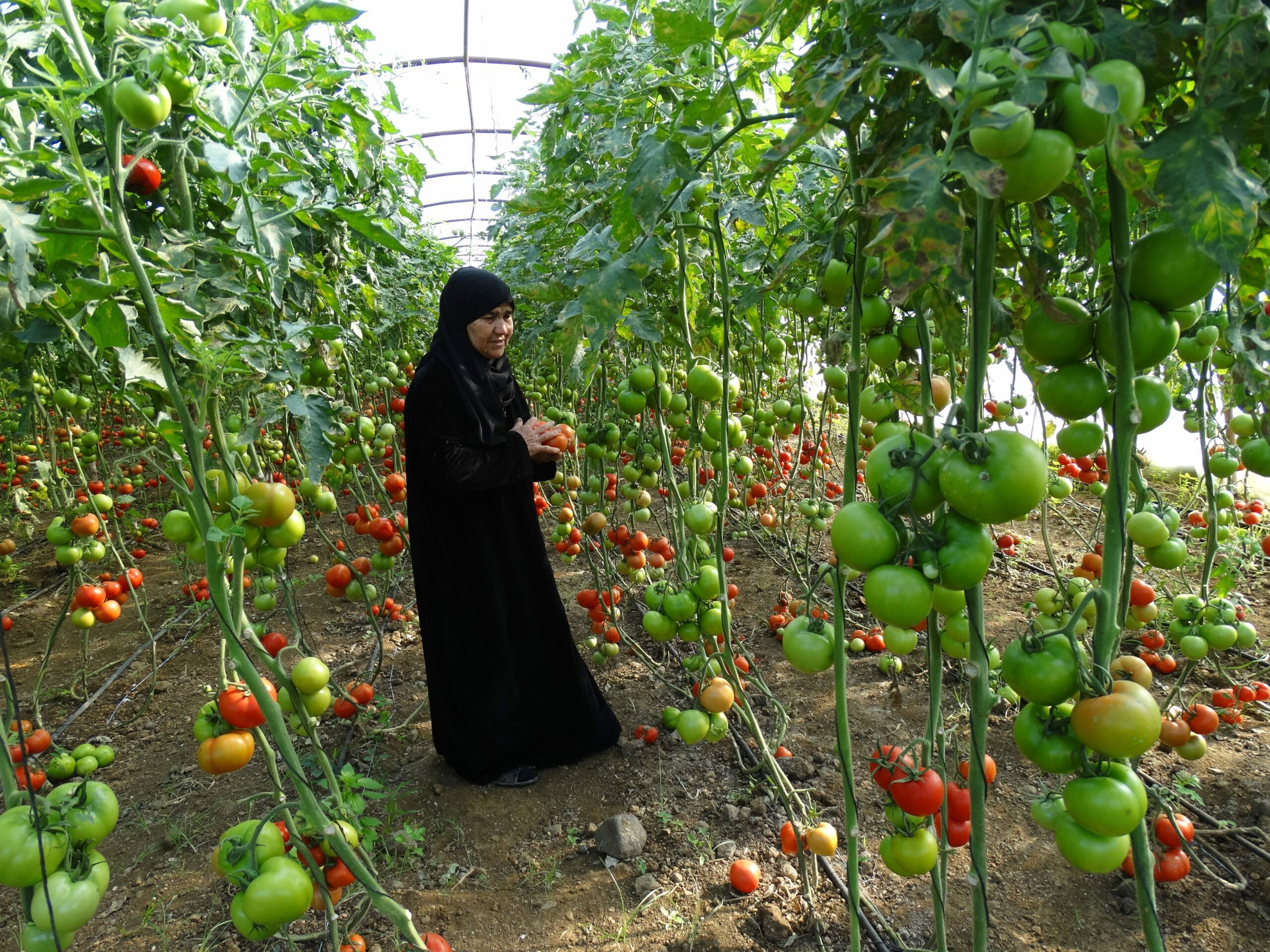 Syrian farmer, Fatima grows tomatoes with a drip irrigation, fertilizer, seeds and material to construct a greenhouse provided by UNDP. (UNDP)