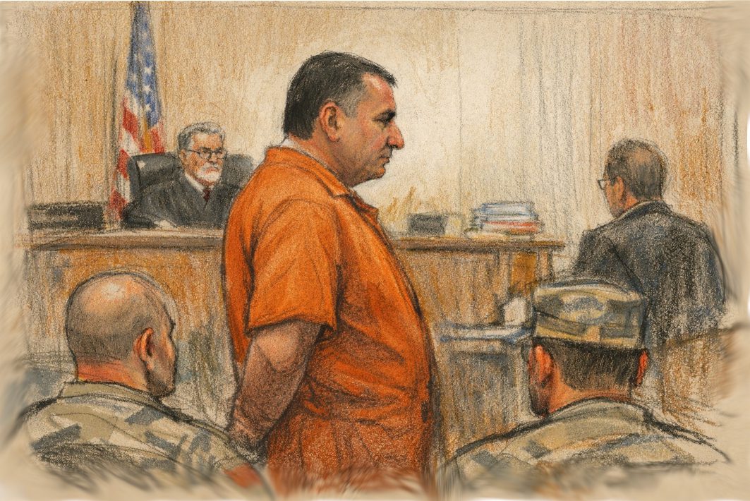 Courtroom Sketch trial of Samir Othman al-Sheikh.